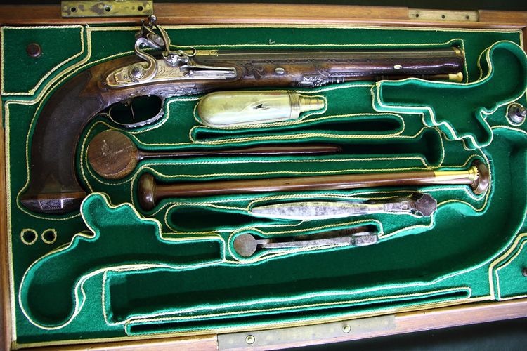 Dzisiaj pistolet z oprzyrządowaniem, którego wartość szacowana jest na kilkaset tysięcy dolarów, można oglądać w sali zwanej „Kossakówką”. W 2004 r. w słynnym londyńskim domu aukcyjnym Christie’s, zestaw złożony z dwóch pistoletów pojedynkowych osiągnął cenę ponad 1,6 mln dolarów.