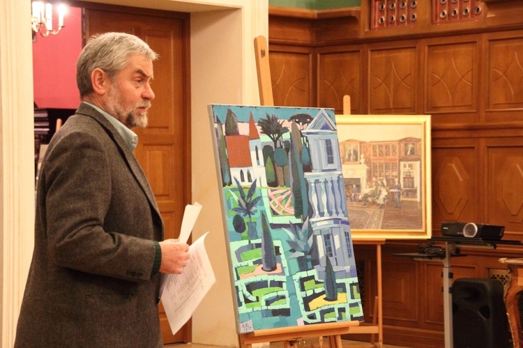 - Pomysł przeprowadzenia aukcji nie jest czymś nowym, gdyż wiele muzeów organizuje je, pozyskując w ten sposób pieniądze na zbożny cel. Naszym celem zaś jest zebranie sumy pozwalającej na zakup sporej, liczącej bowiem 96 obiektów kolekcji po Marianie Ruzamskim, najwybitniejszym artyście malarzu wywodzącym się z Tarnobrzega. Parę lat temu zwrócił się do nas z propozycją jej kupna kolekcjoner w Rzeszowa. Po negocjacjach doszliśmy do porozumienia i teraz zbieramy pieniądze na zakup. Aukcja odbywa się pod hasłem „Artyści dla artysty”, gdyż dzięki pracom współczesnych malarzy, będziemy mogli nabyć prace ich starszego, nieżyjącego kolegi - mówił Tadeusz Zych, dyrektor muzeum. - Pragnę podkreślić, iż od trzech lat w okresie letnim organizujemy w zamku w Dzikowie Międzynarodowe Sympozjum Artystyczne im. Mariana Ruzamskiego, którego uczestnicy, a wśród nich nie brakuje wybitnych i uznanych nazwisk, pozostawiają tutaj swoje prace. Dzisiejsza licytacja jest z jednej strony hołdem złożonym przez współczesnych artystów Ruzamskiemu, a z drugiej każdy, kto wylicytuje obraz dołoży swoją cegiełkę do gromadzonej kolekcji.