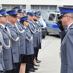 Na dziedzińcu komendy powiatowej w Sandomierzu 27 policjantów odebrało awanse na wyższy stopień zawodowy. Z uwagi na obostrzenia sanitarne tegoroczne Święto Policji zostało zorganizowane w skromniejszej formie.