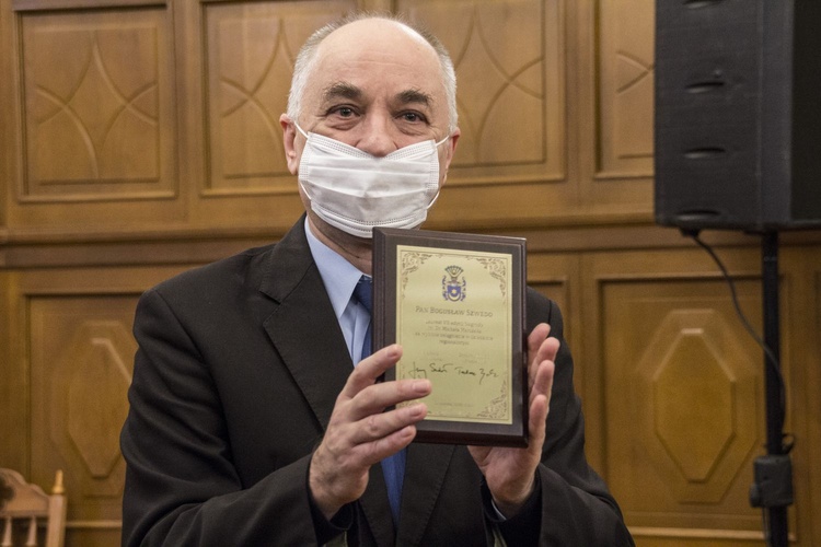 - Nie będę ukrywał, że czuję się zaszczycony, jest to bowiem nagroda renomowana, która stanowi swego rodzaju zwieńczenie 40 lat mojej działalności w dziedzinie historii lokalnej, jak również szerszej. Jestem wdzięczny kapitule, że dostrzegła moją pracę, nagradzając ją - powiedział B. Szwedo. Wspominając początki zainteresowania biografistyką, przywołał postać nieżyjącego tarnobrzeskiego lekarza Zbigniewa Milarskiego. Kiedy na początku lat 90. Światowy Związek Żołnierzy Armii Krajowej postanowił ufundować tablicę upamiętniającą kpt. Gracjana Fróga, Z. Milarski zwrócił się do B. Szwedy z prośbą o opracowanie biografii bohatera zamordowanego przez komunistyczne władze w 1951 roku. - I tak od biogramu mało komu znanego w Tarnobrzegu G. Fróga rozpoczęła się moja pasja, bo skoro powstał jeden życiorys, to dlaczego nie miałaby i drugi, i trzeci? - wspominał laureat.