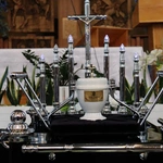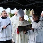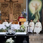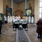 Eucharystię w kaplicy na cmentarzu komunalnym koncelebrowali kapłani z dekanatu ostrowieckiego, a także ks. Konrad Fedorowski, dyrektor Wydziału Duszpasterstwa Małżeństw i Rodzin. W liturgii uczestniczył również chór Cantate Domino z parafii Matki Bożej Saletyńskiej, Rycerze Kolumba oraz licznie zgromadzeni parafianie.