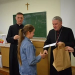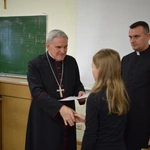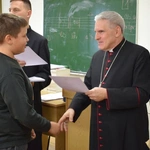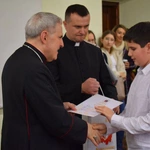 Podczas finału młodzież odwiedził bp Krzysztof Nitkiewicz, który podziękował uczestnikom za zaangażowanie, a katechetom i rodzicom - za trud włożony w ich przygotowanie. - Można powiedzieć, że każdy z was stał się specjalistą od Ewangelii według św. Mateusza. Pamiętajcie jednak, że kiedy czytamy Pismo Święte, wówczas mówi do nas sam Bóg. On kieruje do każdego konkretne przesłanie, na które warto odpowiedzieć. Dlatego zachęcam was do regularnego kontaktu z Pismem Świętym. Na przykład w Adwencie, który rozpocznie się lada moment, warto wziąć do rąk Ewangelię wg św. Łukasza, bo w niej znajdziecie sporo informacji dotyczących narodzin Pana Jezusa. To będzie dobre przygotowanie do świąt Bożego Narodzenia - powiedział biskup. Następnie wręczył wszystkim uczestnikom pamiątkowe dyplomy i nagrody oraz udzielił błogosławieństwa.