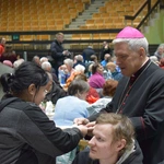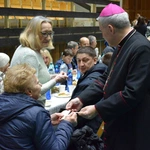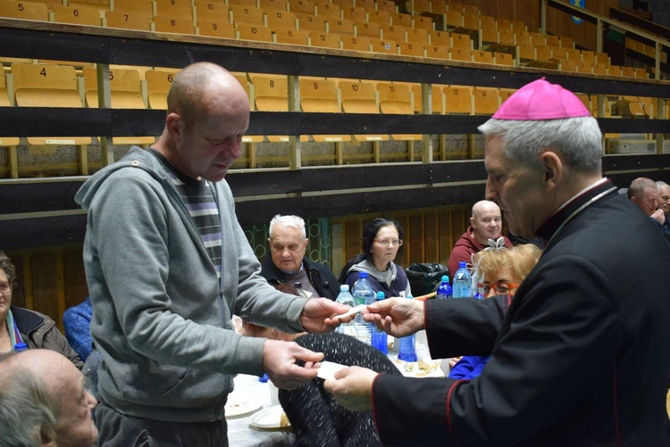 – Pan Bóg jest zawsze blisko człowieka, ale w misterium wcielenia ta relacja osiąga apogeum. Bóg zstąpił na ziemię i przyjął ludzkie ciało, żeby być bliżej nas. Nie można więc inaczej świętować Bożego Narodzenia niż poprzez okazywanie sobie bliskości. Najpierw bliskości wobec Boga, bo On stworzył człowieka, by go kochać i oczekuje naszej odpowiedzi. Ta bliskość wyraża się także przez miłość bliźniego, szczególnie sióstr i braci znajdujących się w potrzebie. Używając słów Ojca Świętego Franciszka, dajemy im w ten sposób nadzieję na lepsze życie. Oni z kolei odwdzięczają się tym samym. Takiej bliskości życzę wszystkim na zbliżające się Święta – powiedział bp Nitkiewicz, który następnie poświęcił opłatki.