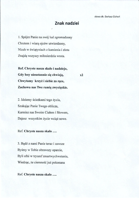 Hymn "Znak nadziei" został oficjalnie zatwierdzony przez biskupa sandomierskiego Krzysztofa Nitkiewicza i będzie towarzyszył uroczystościom jubileuszowym w całej diecezji. Jego przesłanie akcentuje wartość nadziei, jedności oraz duchowej odnowy, co doskonale wpisuje się w ideę roku jubileuszowego.