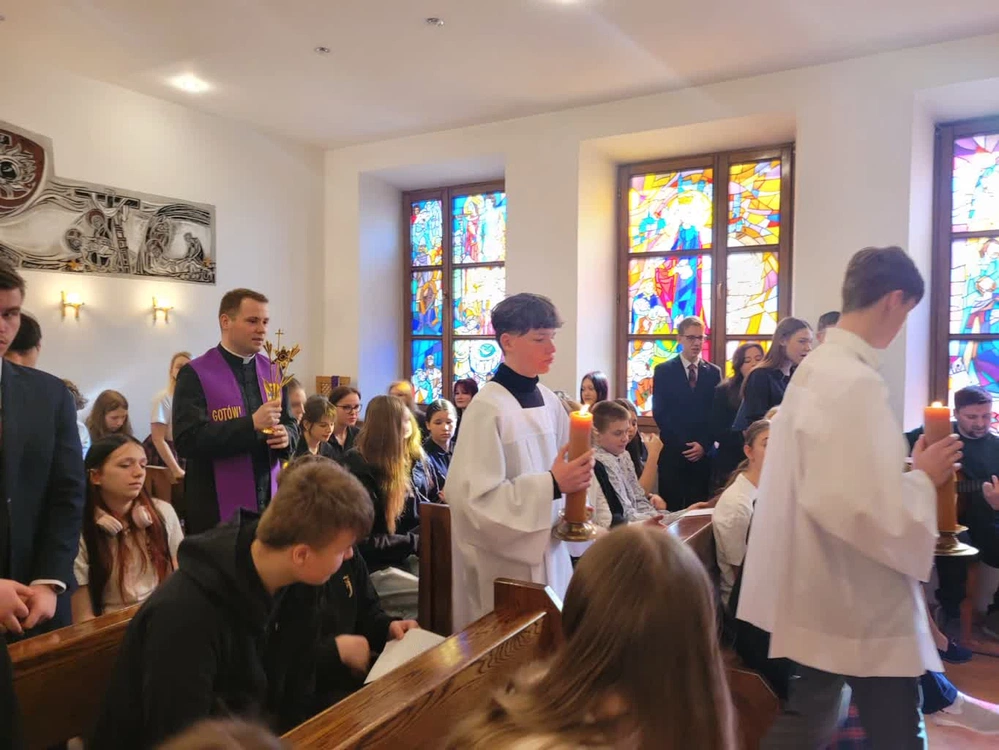 Uroczyste wprowadzenie relikwii do szkolnej kaplicy odbyło się podczas specjalnej modlitwy, której przewodniczył ks. Łukasz Chmiel, diecezjalny asystent Katolickiego Stowarzyszenia Młodzieży.