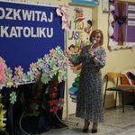 - Przepisałam moją córkę tutaj i dzięki wsparciu nauczycieli rozkwitła. Była zamkniętym pączkiem, jednak praca pedagogów pozwoliła jej otworzyć się i rozwinąć, zakwitnąć zgodnie z hasłem, towarzyszącym dzisiejszemu wydarzeniu. Mam jeszcze młodszą córkę i z całą pewnością również zapiszę ją do Katolika, gdyż nie wyobrażam sobie żeby uczyła się w innej szkole. Jest tu świetna atmosfera. Jeśli pojawiają się jakieś problemy, od razu następuje wsparcie ze strony nauczycieli, pani dyrektor, którzy są autentycznie chętni i otwarci na współpracę. Z pewnością niebagatelne znaczenie ma tu kameralność placówki, kilkunastoosobowe klasy, co ułatwia i pozwala nauczycielom na poświęcenie każdemu uczniowi więcej czasu. Co szczególnie doceniam i podkreślam, sama bowiem jestem nauczycielką. Efektem jest to, że w domu poświęcamy niewiele czasu na naukę, bo sprowadza się ona tylko do powtórzenia jakiejś części materiału, by lepiej się utrwalił. Krótko mówiąc: jestem tą szkołą zachwycona - mówi Ewelina Kołodziejska, mama Amelii, uczennicy II klasy, i Kornelii, która już niebawem zasiądzie w ławkach Katolika.