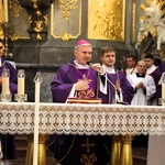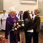 Następnie bp Krzysztof Nitkiewicz pobłogosławił różańce oraz długopisy – dar ojców paulinów oraz diecezjalnych duszpasterzy dzieci i młodzieży – które młodzi zabrali ze sobą na czas egzaminów maturalnych.