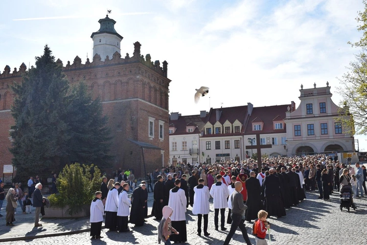Droga Krzyżowa zgromadziła licznych wiernych, którzy wraz z duchowieństwem rozważali Mękę Pańską. Krzyż na kolejnych odcinkach drogi nieśli przedstawiciele różnych wspólnot i stanów m.in. młodzież z sandomierskich parafii, strażacy, Przyjaciele Oblubieńca, Wojownicy Maryi, Rycerze Kolumba, kapłani, klerycy i siostry zakonne.