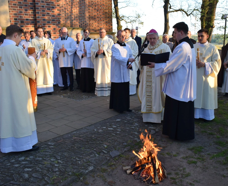 Obrzędy rozpoczęły się od poświęcenia ognia i Paschału – symbolu zmartwychwstałego Chrystusa, który rozprasza mrok grzechu i śmierci. W blasku tego światła oraz świec trzymanych przez wiernych rozbrzmiało uroczyste Orędzie Paschalne. Następnie zgromadzeni uczestniczyli w liturgii słowa, która wprowadzała w misterium zbawienia.