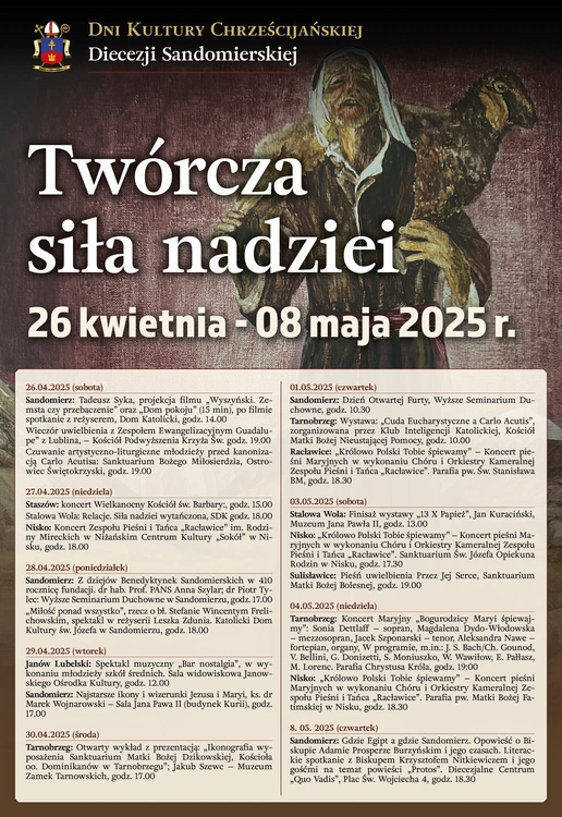 Wydarzenie organizowane pod hasłem "Twórcza siła nadziei" to propozycja skierowana do wszystkich, którzy pragną zanurzyć się w kulturze inspirowanej Ewangelią i odnaleźć w niej źródło piękna, prawdy i dobra. Jego celem – jak podkreślają organizatorzy – jest przywrócenie należnego miejsca kulturze zakorzenionej w Ewangelii, liturgii i chrześcijańskiej tożsamości.