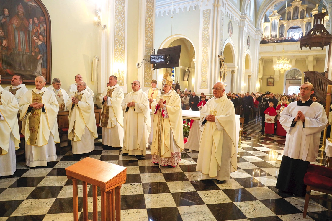 Eucharystii przewodniczył bp Krzysztof Nitkiewicz. Mszę św. koncelebrowali ks. Leszek Pituch, proboszcz parafii, kapłani z dekanatu, księża pochodzący z Połańca oraz ci, którzy posługiwali w tej parafii na przestrzeni lat. W modlitwie wzięli udział przedstawiciele władz miejskich z burmistrzem Jackiem Benedyktem Nowakiem na czele, poczty sztandarowe oraz licznie zgromadzeni parafianie i goście.