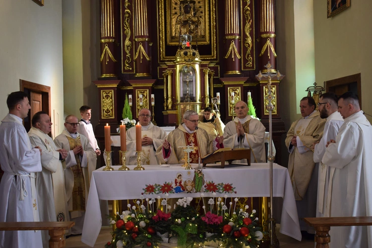 Koncelebrowali kapłani pochodzący z parafii lub w niej posługujący na czele z proboszczem ks. Pawłem Bieleckim oraz ks. Bogdanem Krempą, dziekanem dekanatu Koprzywnica. W liturgii uczestniczyła burmistrz Osieka Magdalena Marynowska, rodzina śp. ks. Chmielewskiego oraz wierni.
