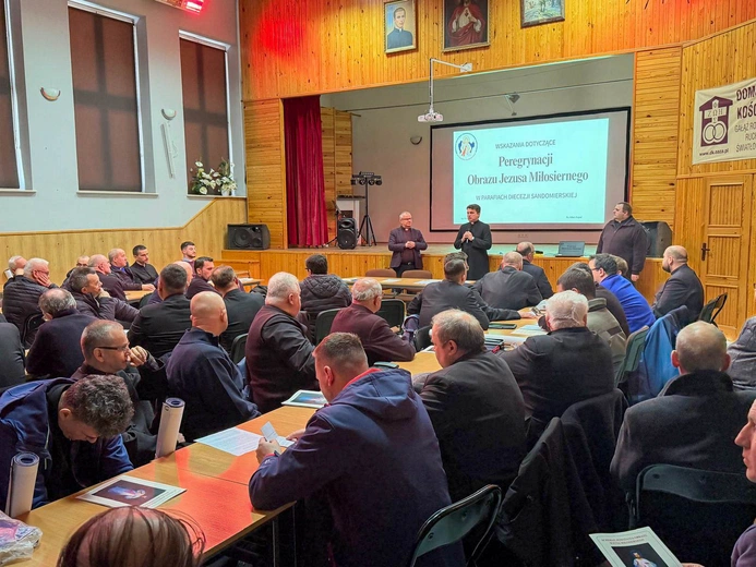 W sobotę 21 lutego w sali "Michael" przy parafii pw. św. Michała Archanioła w Ostrowcu Świętokrzyskim odbyło się spotkanie dla kapłanów z pierwszych sześciu dekanatów, które odwiedzi obraz Jezusa Miłosiernego w ramach diecezjalnej peregrynacji pod hasłem "Świadkowie Miłosiernego".