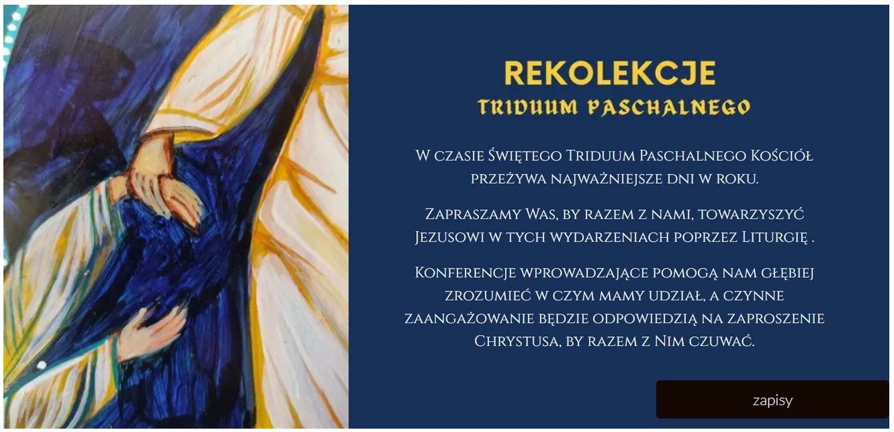 Rekolekcje odbędą się w Ośrodku Formacji Liturgicznej Sióstr Jadwiżanek w Zawichoście w dniach od 2 do 5 kwietnia 2026 roku, czyli od liturgii Wielkiego Czwartku do nieszporów chrzcielnych w Niedzielę Zmartwychwstania. Poprowadzą je ks. Jacek Nowak SDS wraz z siostrami jadwiżankami wawelskimi, które od lat angażują się w formację liturgiczną i organizację rekolekcji przeżywanych w rytmie modlitwy Kościoła.