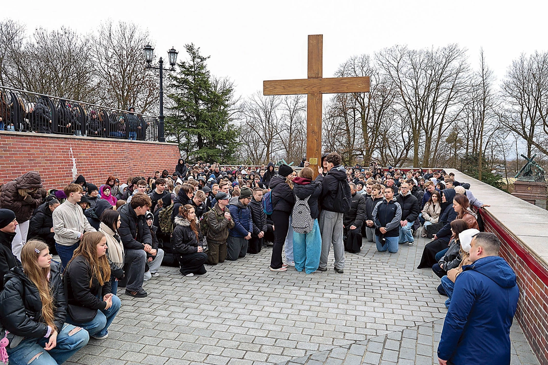 Pielgrzymka rozpoczęła się nabożeństwem Drogi Krzyżowej na Wałach Jasnogórskich. Rozważania przygotowali i odczytali uczniowie Katolickiego Liceum Ogólnokształcącego w Sandomierzu wraz z opiekunem ks. Mateuszem Kobylarzem. Kolejnym punktem programu było spotkanie z zaproszonym gościem – Pawłem Cwynarem. W przeszłości związany ze środowiskiem przestępczym, dziś angażuje się w działalność profilaktyczną i ewangelizacyjną, dzieląc się doświadczeniem radykalnej zmiany życia.