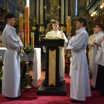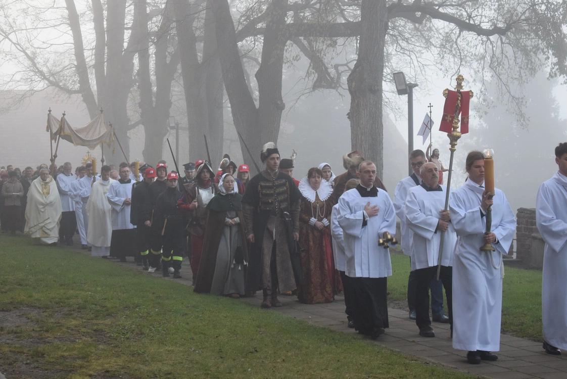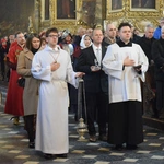 Eucharystia rozpoczęła się od trzykrotnego obejście kościoła. W procesji wzięli udział kapłani, klerycy, Rycerstwo Ziemi Sandomierskiej w historycznych strojach, a także licznie zgromadzeni wierni i przybyli goście.