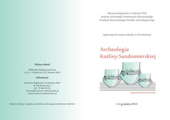 W dniach 3-4 grudnia 2015 roku Muzeum Regionalne w Stalowej Woli zaprasza na konferencję naukową poświęconą archeologii Kotliny Sandomierskiej. Wydarzenie to współtworzy Instytut Archeologii Uniwersytetu Rzeszowskiego oraz Fundacja Rzeszowskiego Ośrodka Archeologicznego.