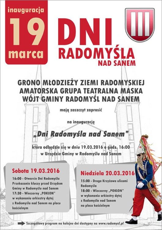 Na Dni Radomyśla nad Sanem zapraszają Grono Młodzieży Ziemi Radomyskiej, Amatorska Grupa Teatralna Maska oraz wójt gminy Radomyśl nad Sanem. Szczegóły na www.radomysl.pl